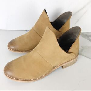 Super cute, Nubuck Leather slip on Booties with intentionally distressed details. Side cut outs. New without tags. Size 6.5. Cushioned insole. High quality! 1.5” heel SE