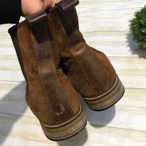 These boots are in good overall condition. Dark spot on suede as pictured. May clean out. Brown tan leather suede. Denham Chelsea boot style in chestnut. Men’s size 13. 12.10.22