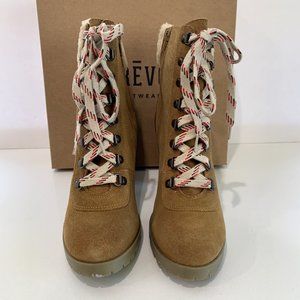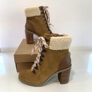 NEW Crevo Nordstrom Joan Boots Suede Leather Faux Fur Heel Booties Tan Size 9 NIB