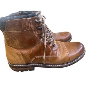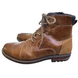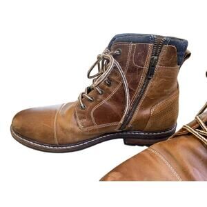 Crevo Mens Chestnut Brown Leather Hammersmith Ankle Boots Sz 12 Lace-Up & Zip