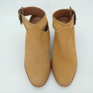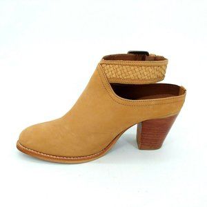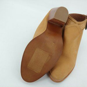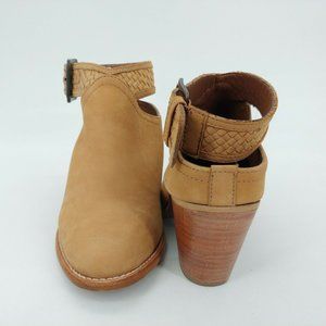 Crevo Womens Eva Leather High Heel Buckle Ankle Strap Bootie Stacked Tan 9
