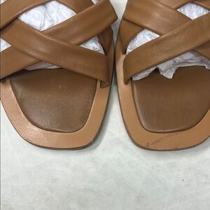 Crevo Women's Tan Chestnut Leather Slide Sandals | 12