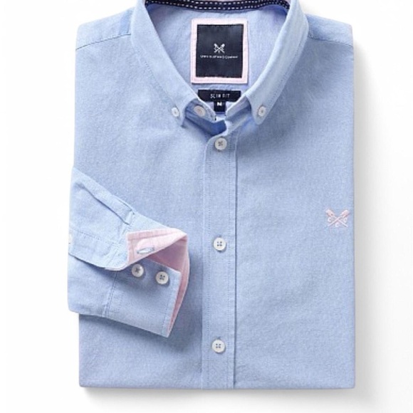 Elevate your smart-casual look with this Crew Clothing Oxford shirt in chambray blue. Crafted from soft cotton with a slim fit, it features a button-down collar, branded buttons, and subtle pink details. Sleeves can be button and not show pink or rolled for a hint of pink. Perfect for pairing with jeans or chinos. Don’t miss out on this stylish wardrobe essential!