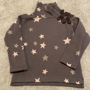 Cute size 2 gray cowl neck sweatshirt with gold glitter and tan stars all over. 60% cotton blend.