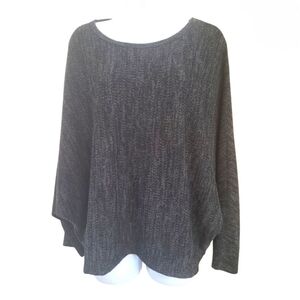 Crew Neck Top with Relaxed Fit and Soft Knit Texture Bat Sleeve Size Large