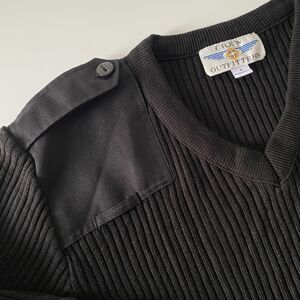 Crew Outfitters Commando Sweater Men's Sz Small Patch Ribbed Black V Neck