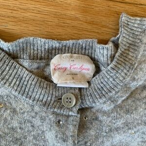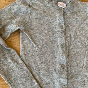 This cardigan is lightweight wool. It’s hard to photograph them but there are sparkles throughout the cardigan. This is a great layering piece for your kiddos cute sleeveless holiday dresses.