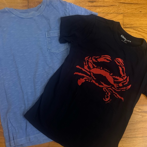 EUC Bundle of two CrewCuts tshirts One baby blue garment dyed pocket tee and one navy blue with red crab tee