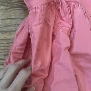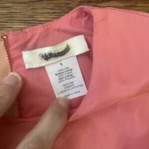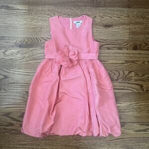 Crewcuts sleeveless pink dress with removable flower belt size 6 years. Outer is 100% silk. Bubble hem on skirt, functional pockets and exposed gold zipper in back. GUC - inside tag is marked through, otherwise minor wash wear.