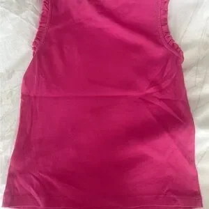 Crewcuts sleeveless ribbed tank in bold pink. Soft stretch fabric with delicate ruffle trim at the neckline. Simple, stylish piece for everyday wear.