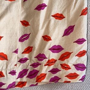 Charming cream skirt with playful red and purple lip prints. Perfect for fun outings.