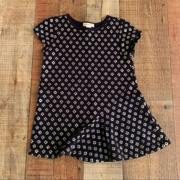 Adorable navy blue Crewcuts dress for toddlers, featuring silver metallic flowers. Perfect for any special occasion or everyday wear.