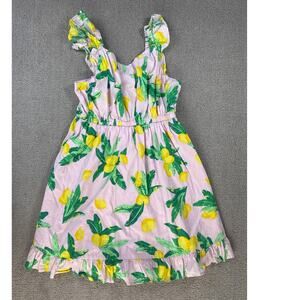 Crewcuts Dress Girls Sleeveless Lemon Print Pink Ruffle Mini Size 10