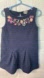 Navy dress with colorful floral embroidery. Sleeveless design.
