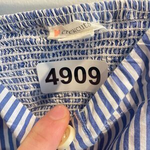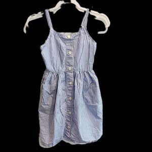 Crewcuts Girls Blue Striped Sundress Size 10 Button Front Pockets Smocked Waist