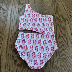 Crewcuts Girls Floral Printed Pink One Piece Cut Out Swim Suit Size 12 J.Crew