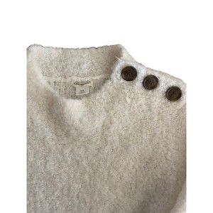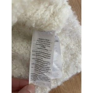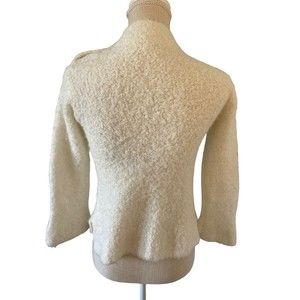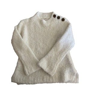 The sweater comes in a lovely ivory color and features long sleeves, making it perfect for layering. It's a pullover style sweater that's easy to wear, and it's available in a size 10. The material is a blend of 61% acrylic, 15% wool, 10% alpaca, and 1% elastane. It's not vintage, and it's in excellent condition.