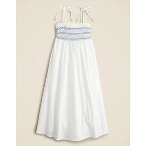 Description: Let your little one shine in the Crewcuts Girl's Paloma Smocked Cotton Poplin Maxi Dress. This beautiful white and blue dress combines relaxed, bohemian chic with a vintage-inspired smocked design, making it perfect for both casual and special occasions. Its free-spirited, artsy style offers a modern twist on classic elegance, ensuring she's both comfortable and stylish. With its easygoing, laid-back charm, this versatile, fashion-forward dress is an on-trend, statement-making piece. Embrace its unique and authentic flair, ideal for the young trendsetter looking to make an unforgettable impact wherever she goes.