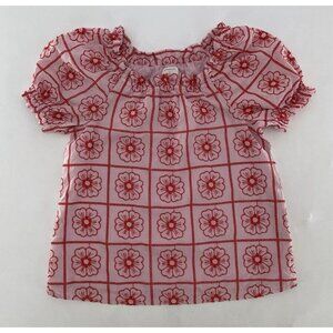 Crewcuts Girls Pink & Red Floral Embroidered Puff Sleeve Lined Blouse Size XL