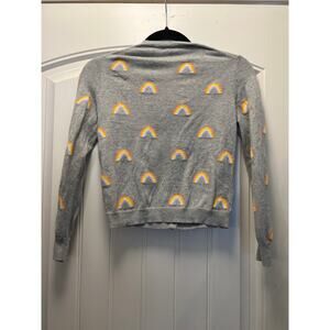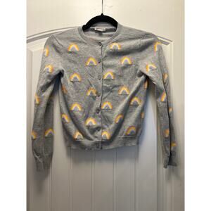 Crewcuts Girls Rainbow Print Button Front Soft Cardigan Sweater Size 12 Gray