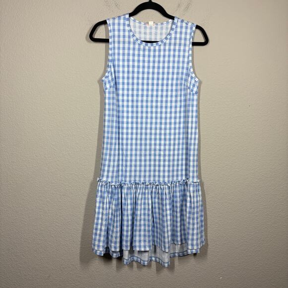 Crewcuts Girls Size 16 Gingham Drop Waist Dress Blue White Cotton Flared Sleeveless