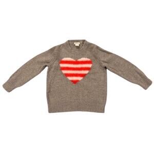 -A gray sweater with a fuzzy red and white heart