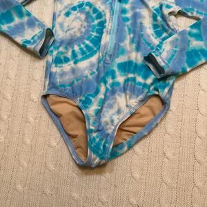Crewcuts Girls Zip-up Rash Guard One-piece Swimsuit UPF 50 fabric Tie Dye Sz 4-5