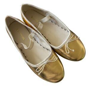 Crewcuts Gold Strappy Ballet Flats Mary Jane Shoes Size 4 Kids Big Girls Youth
