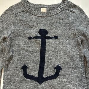 Cozy and stylish Crewcuts sweater, perfect for your little one! This charming pullover features a heathered grey knit with a prominent anchor design on the front. It has a classic crew neck and ribbed cuffs and hem. Made from a comfortable blend, this sweater is great for cooler days and adds a touch of nautical flair to any outfit.