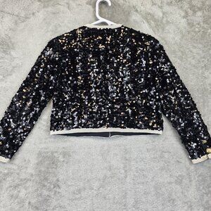 Crewcuts Jacket Girls Medium 8-9 Black Sequin Tweed Trim Cardigan Party Holiday
