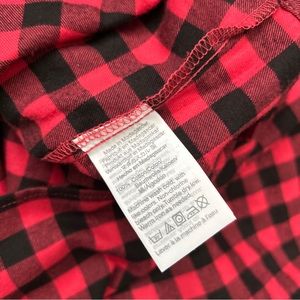 Red and black checked flannel, tunic length, ruffle sleeves, keyhole back.