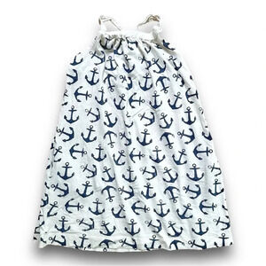Adorable anchor print nautical themed summer dress from Crewcuts. Tank top straps; bow at the back; pockets at the hips. Perfect poolside and ocean side.