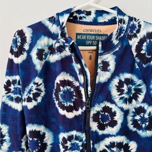 Navy and white bodysuit with a fun pattern. Long sleeves and zip front. Ideal for play and comfort.
