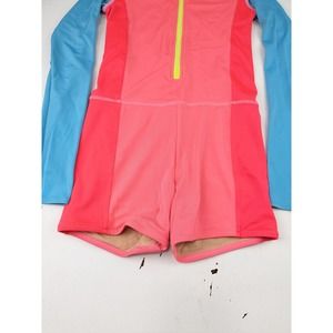 Crewcuts rashguard, neon salmon/neon yellow/blue colors, size 8, good condition for some pilling on the bum area, no stains or holes