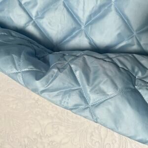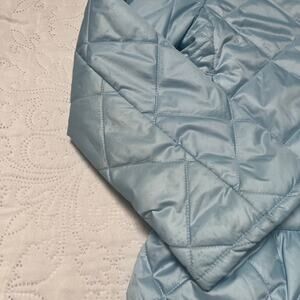 Crewcuts Factory quilted jacket in light blue. Lighter weight puffer coat with collar and peplum bottom. Play condition for light spot and front and multiple water mark type spots (see photos). Size S / 6-7