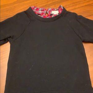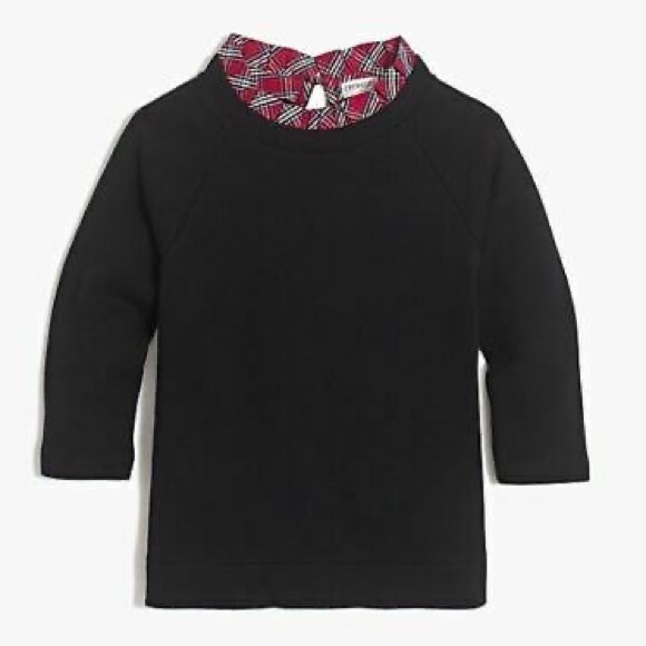 EUC Black sweatshirt with red plaid ruffle around neck. Has keyhole back, 3/4 length sleeves, and a split hem. Shows very little signs of wear.