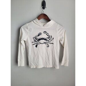 Crewcuts Shirt 6-7 Crab Print White Blue Pullover Nautical LS Hooded Beach S