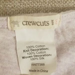 Crewcuts cotton tank with cotton and silk ruffles on front. The ruffles have a raw edge (see pics for close up- they're in good condition, but there is some wear as there would be with any raw edge). Gently worn, lots of good life left. A very fun top when your kid wants to wear something a little more special than a normal blouse or shirt! My daughter always felt SO fancy with all the ruffles! 😍