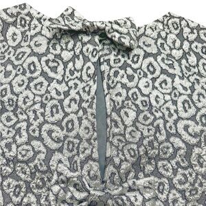 Beautiful metallic jacquard; bow detail and single button closure in the back; fully-lined.