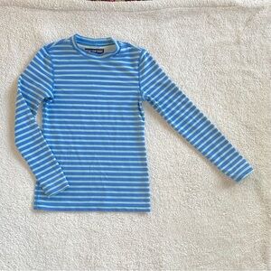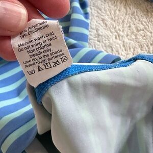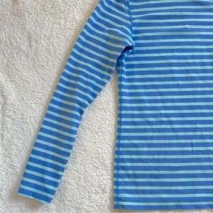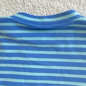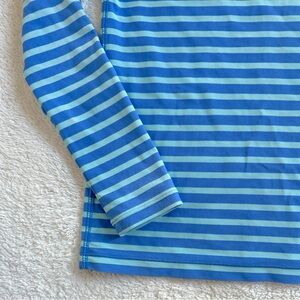 In very good used condition a lighter blue (with a hint of teal) with darker blue stripes. UPF 50+