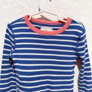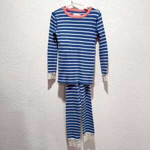 Crewcuts Waffle Knit Striped Pajama Set Boys Size 7 Blue White Coral Unisex