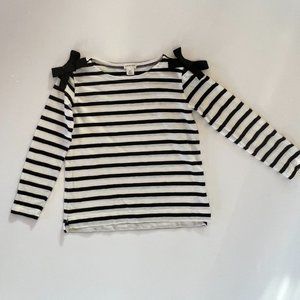 Crewcuts black/white breton stripe long-sleeve T-shirt with bows, 6-7 years