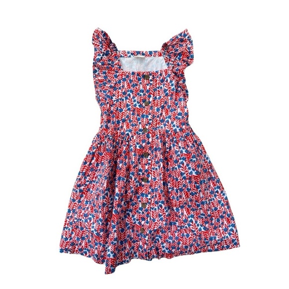 Crewcuts blue and red floral button front dress 7