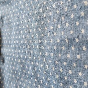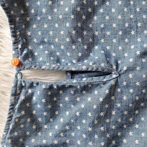 A more dressed-up way to do chambray (one of our favorite...warm-weather fabrics): a fun allover star print and sweet shoulder-baring sleeves.