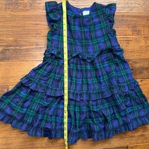 Crewcuts girls’ ruffle trim dress in shimmer blue and green plaid, size 5