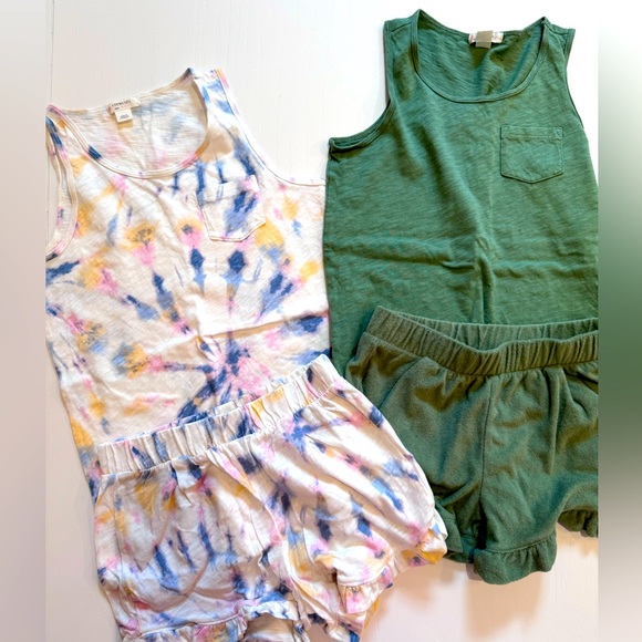 2 summer sets. Size 7 shorts (run big). Size 8/9 shirts.