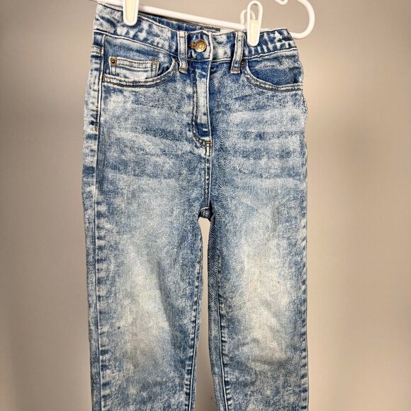 The coolest collab (I've never seen it before!) from Crewcuts and Loeffler Randall. The jeans are straight leg with a cute torn edge bottom and almost an acid wash denim vibe. They're size 10 and so fun!