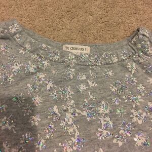 Cotton t-shirt w 3/4 sleeves. White paint & glitter design on the front. Crew neck. Gently worn. Per & smoke free home.