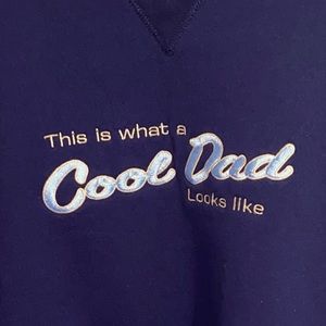 This is a 2xl crewneck with a dad slogan on the front. Navy blue in color with no rips stains or tears.