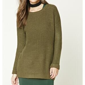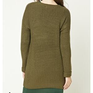 Olive color, full length 29", sleeve length 18.5", oversized, dolman sleeve with fold-over cuff